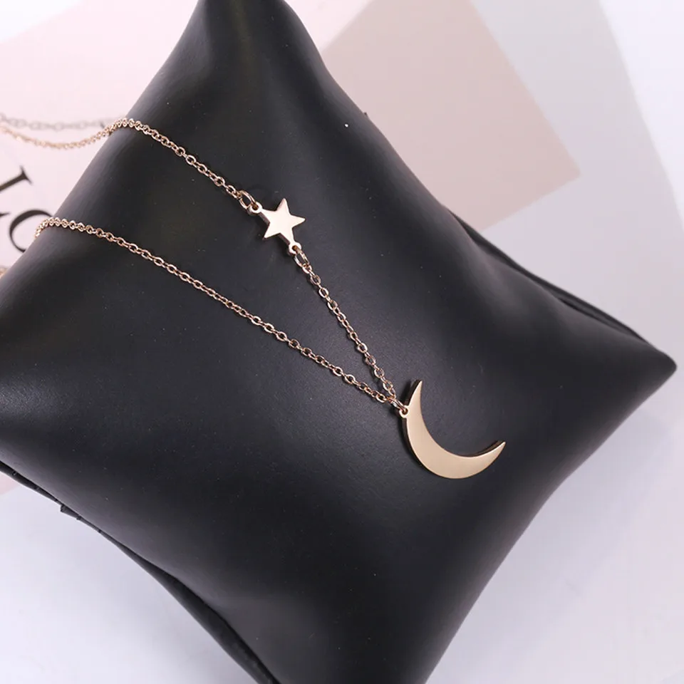 Best Classic Stainless Steel Women's necklace Fashion Golden & Silver Moon Star Clavicle chain necklaces