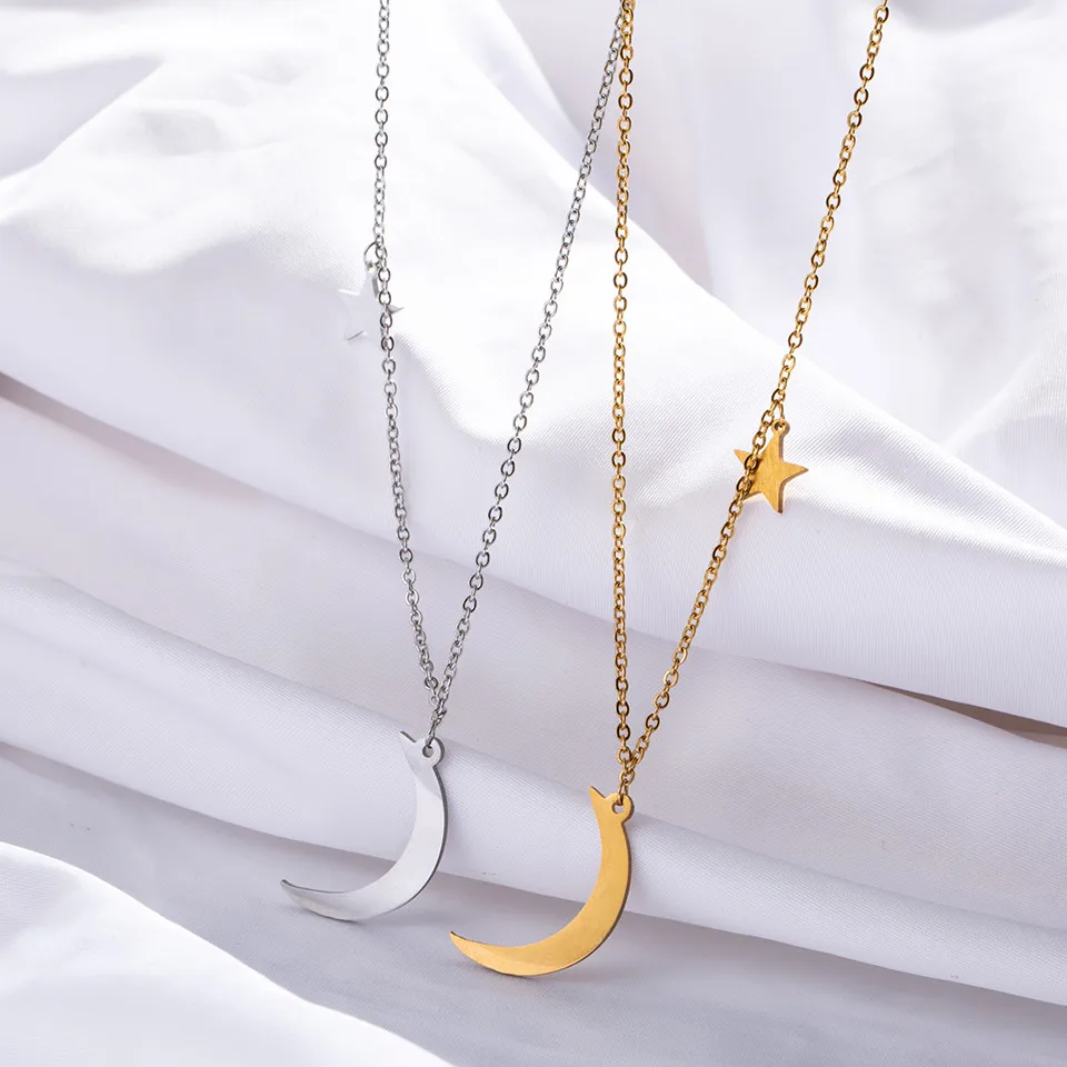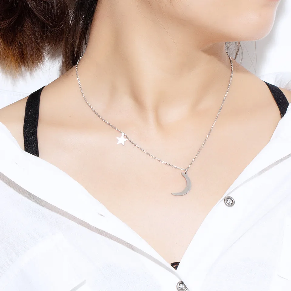 Buy Classic Stainless Steel Women's necklace Fashion Golden & Silver Moon Star Clavicle chain necklaces