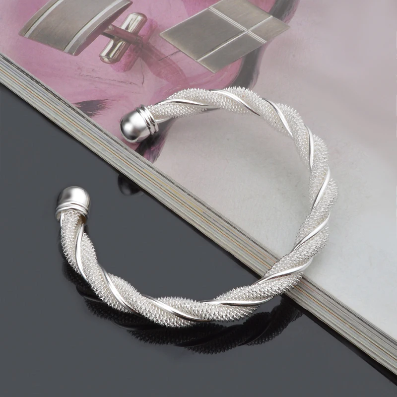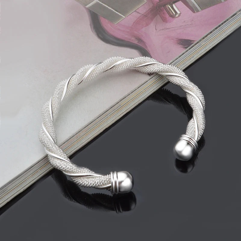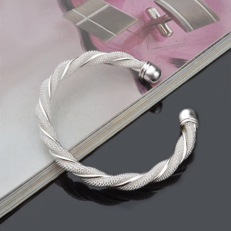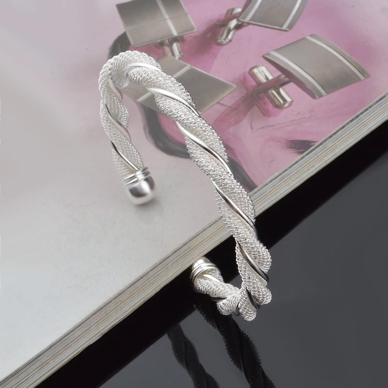 Best Silver Wire Mesh Bangles For Women Jewelry Open Cuff Bangle Bracelet pulceras y brazaletes mujer Fo