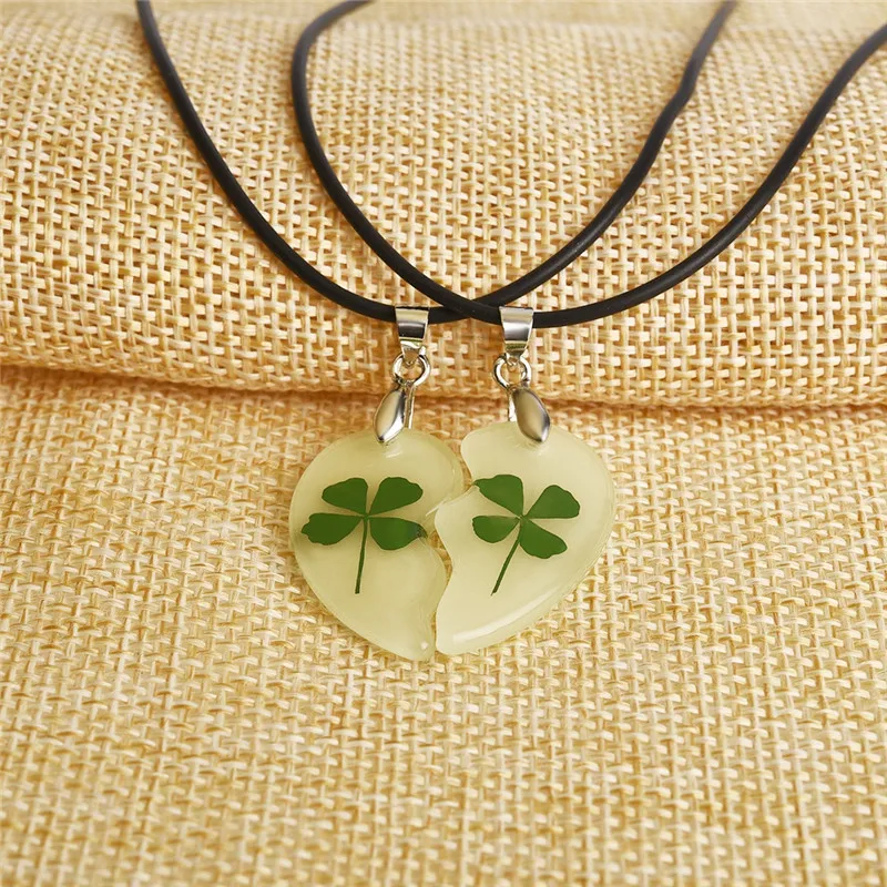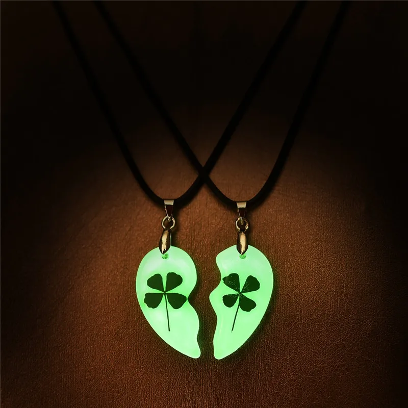 Best YAKAMOZ Clover Luminous Couple Necklace 2pcs Heart Shape Pendant Necklace Glowing In The Dark Lover