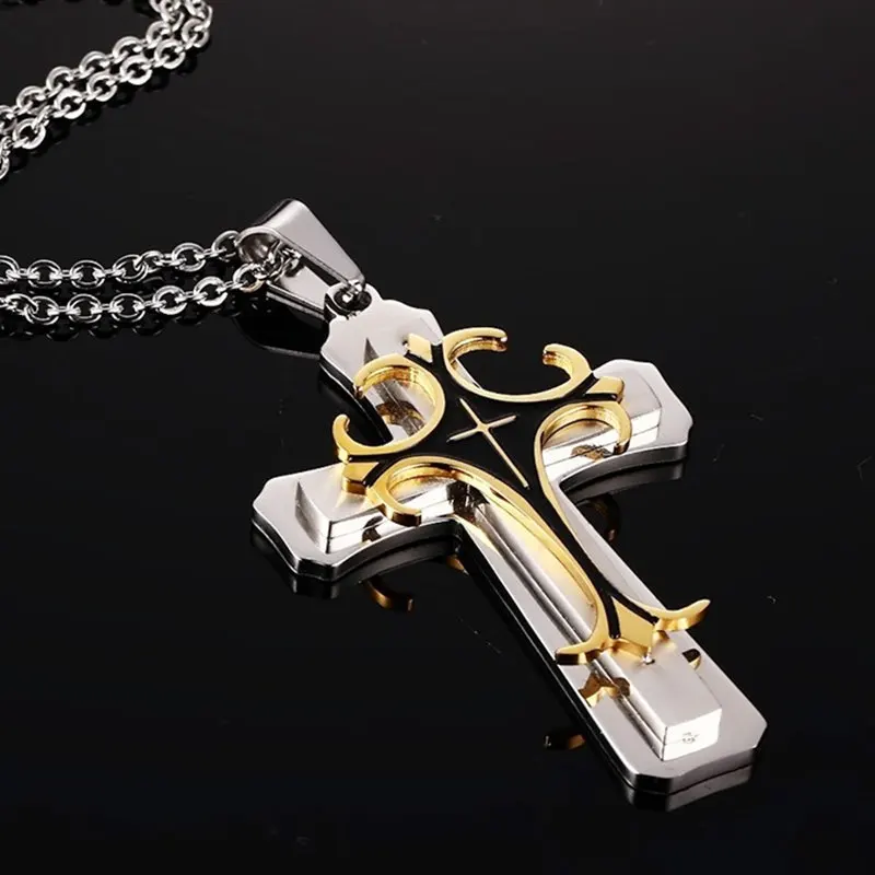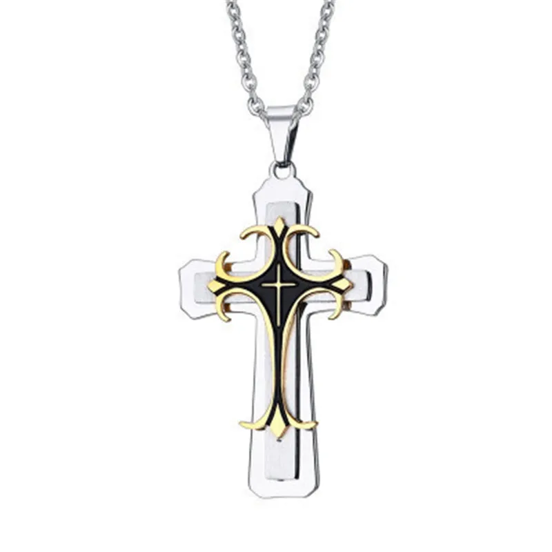 New 2019 New Fashion Cross Pendant Necklace for Men Multi-layer Metal Creative Cross Gold and Silver Pe