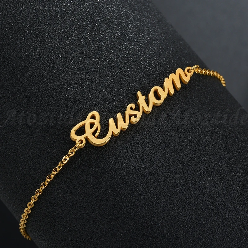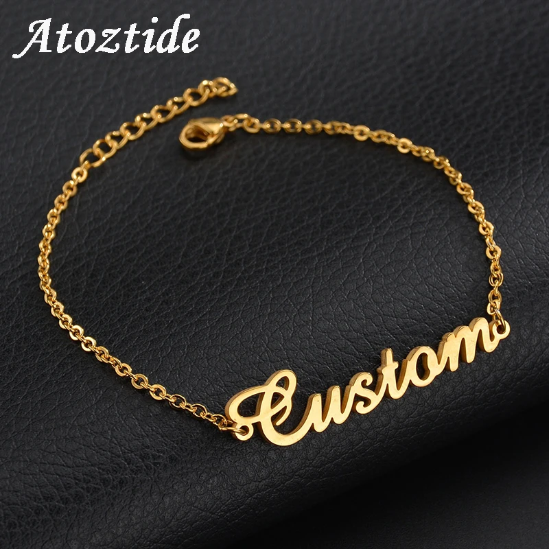 New Atoztide Personalized Custom Name Bracelet For Women Stainless Steel Charms Handmade Engraved Handw