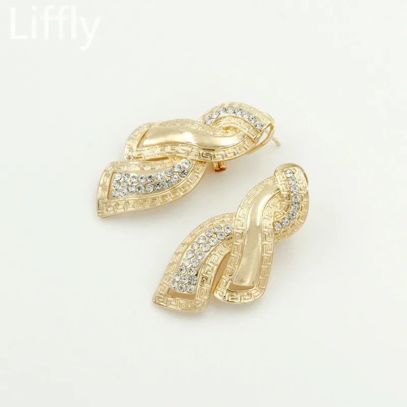 Promo Fashion African Dubai Gold Jewelry Nigerian Crystal Necklace Hoop Earrings Women Italian Bridal Jew