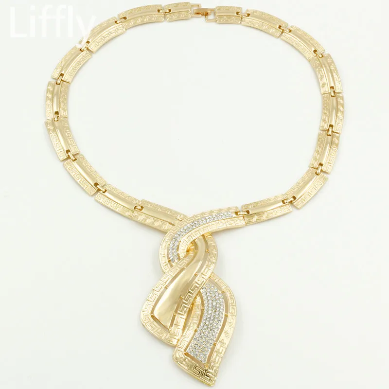 Buy Fashion African Dubai Gold Jewelry Nigerian Crystal Necklace Hoop Earrings Women Italian Bridal Jew