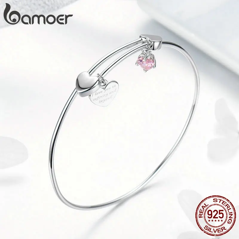 New BAMOER Romantic Authentic 925 Sterling Silver I Love You Love Heart Female Bangles for Women Sterli