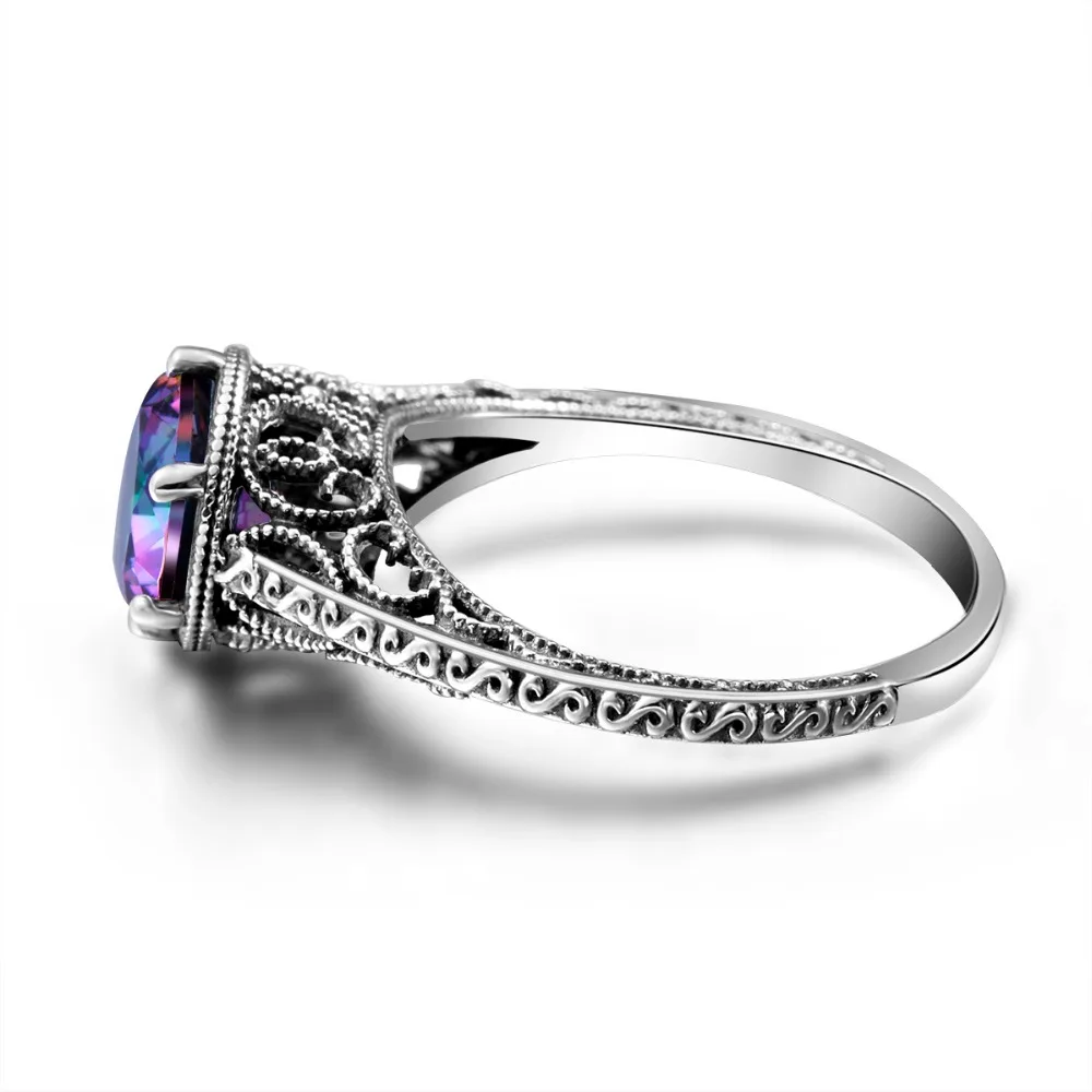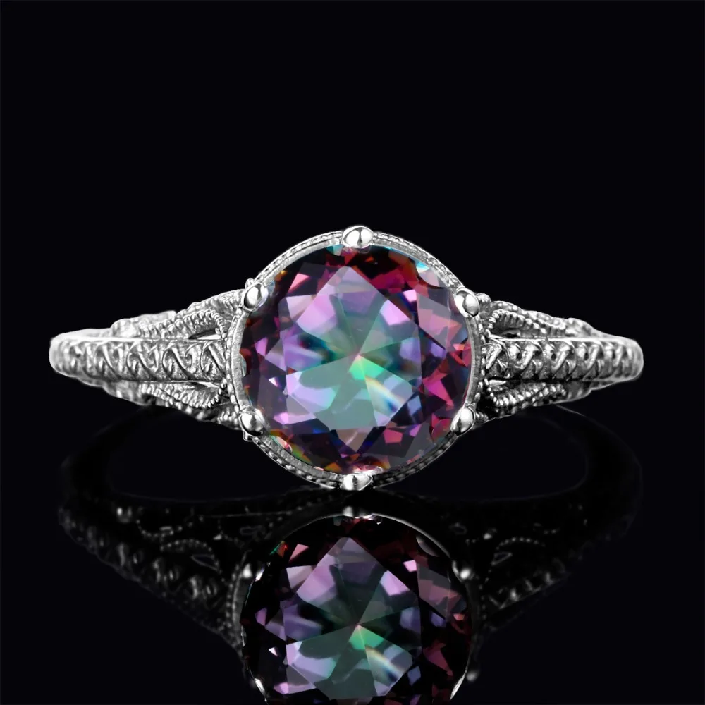 New Szjinao 2.8ct Mystic Fire Rainbow Topaz Rings for Women Wedding Ring Solid 925 Sterling Silver Fine